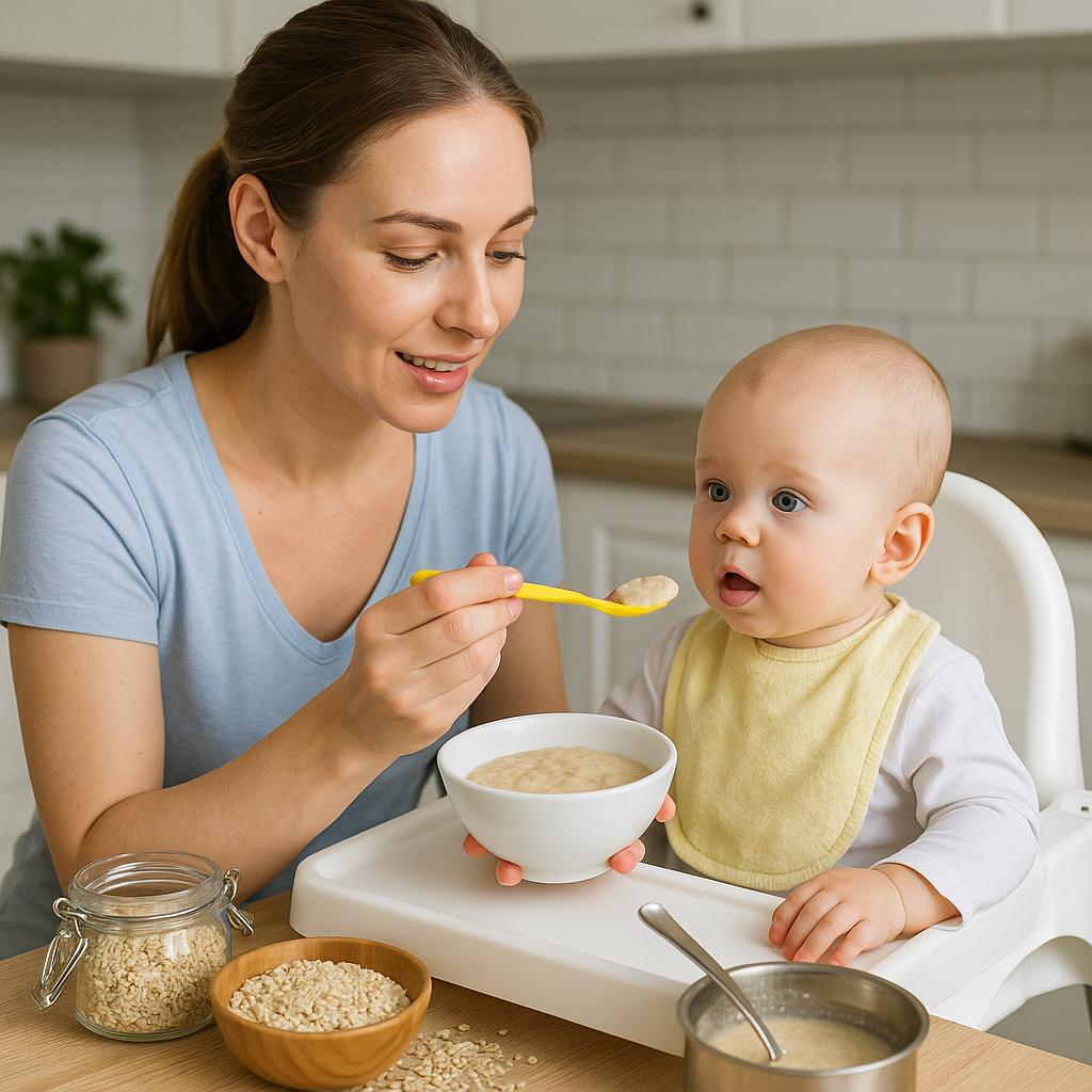 Введение прикорма обычно начинается с 0,5-1 ч. л. рисовой или гречневой каши.