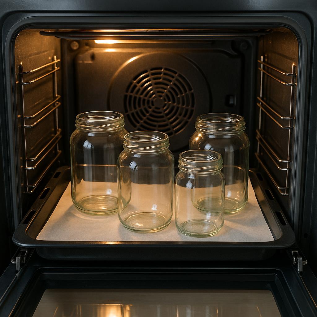 Нужно учитывать, что в духовке банки достаточно сильно нагреваются. По этой причине нужно в обязательном порядке использовать кухонные прихватки или варежки во время доставания сосудов из духовки.