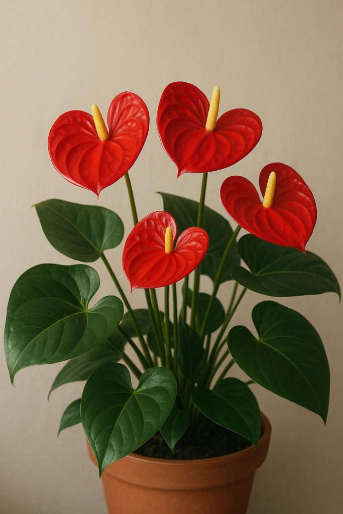 Антуриум будет цвести круглый год, если соблюдать температурный режим в помещении. Летом 20- 25 градусов, зимой — 18-20.