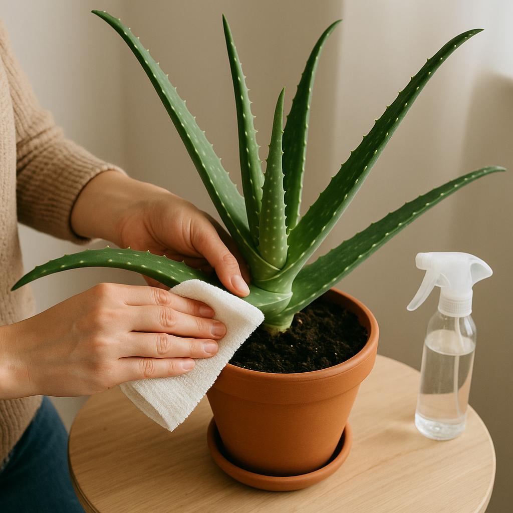 Алоэ — это растение, пришедшее к нам из засушливой Африки. Оно приспособлено к долгому существованию без влаги и с легкостью перенесет ее отсутствие, а вот переизбыток воды приведет к загниванию корней. Уход за алоэ в домашних условиях прост: достаточно поливать алоэ только по мере пересыхания грунта. Нередки случаи, когда алоэ значительно разрастается вширь, и подобраться к почве становится затруднительно. В таком случае растение нужно поливать 2 раза в неделю в летнее время. Зимой полив необходимо сократить до 2 раз в месяц. Вода вам понадобится не слишком холодная и обязательно отстоянная. Листья растения следует протирать влажной тряпочкой по мере накопления на них пыли, но не опрыскивать.