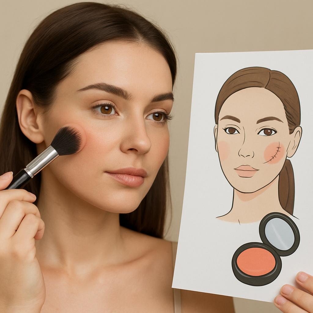 Текстура румян может существенно повлиять на корректировку овала лица.