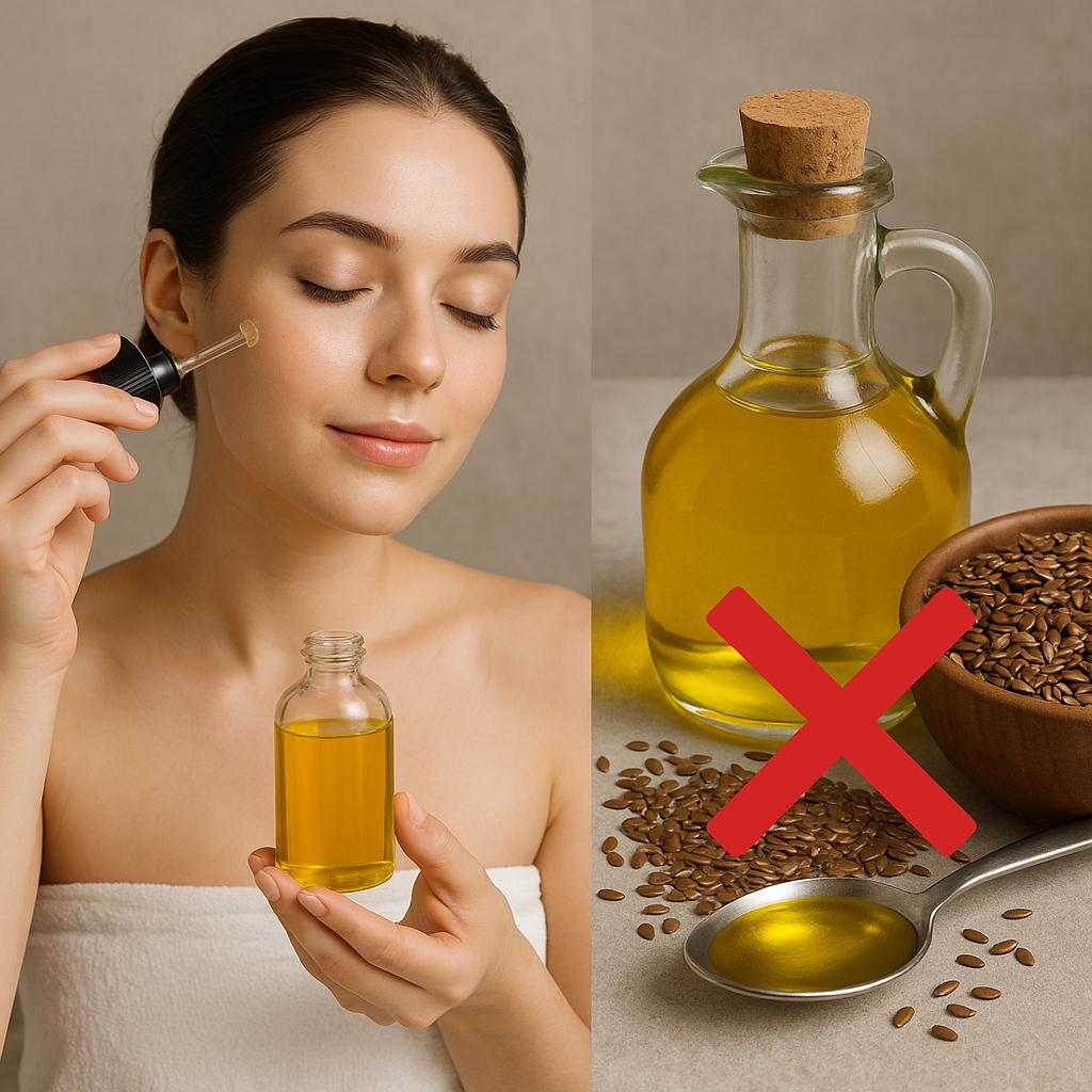 Как и любое другое масло, льняное лучше наносить на кожу в чистом виде или в составе другой косметики как маску для кратковременного действия.