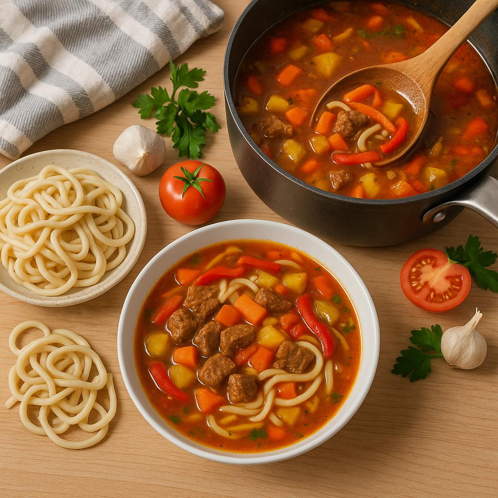 Рецепт лагмана достаточно прост. Вы можете добавлять в него любые ингредиенты, которые вам нравятся. Главное чтобы соус был приготовлен по рецепту.