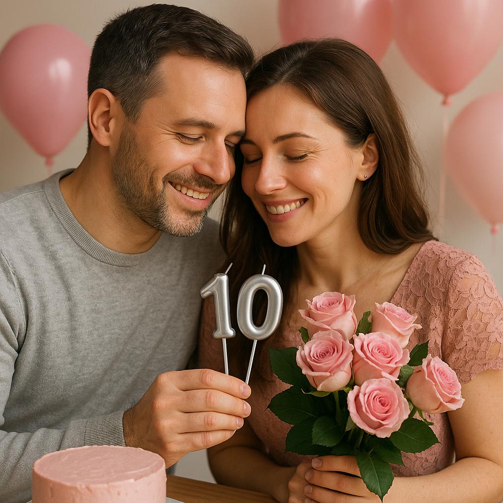 Второе название этой годовщины свадьбы — розовая. И это также неспроста. Роза — символ любви. Так и 10 годовщина свадьбы символизирует это прекрасное чувство. Романтика по-прежнему присутствует в совместной жизни обоих супругов. Они очень нежно и ласково относятся друг к другу: проявляя заботу, внимание и уважение.