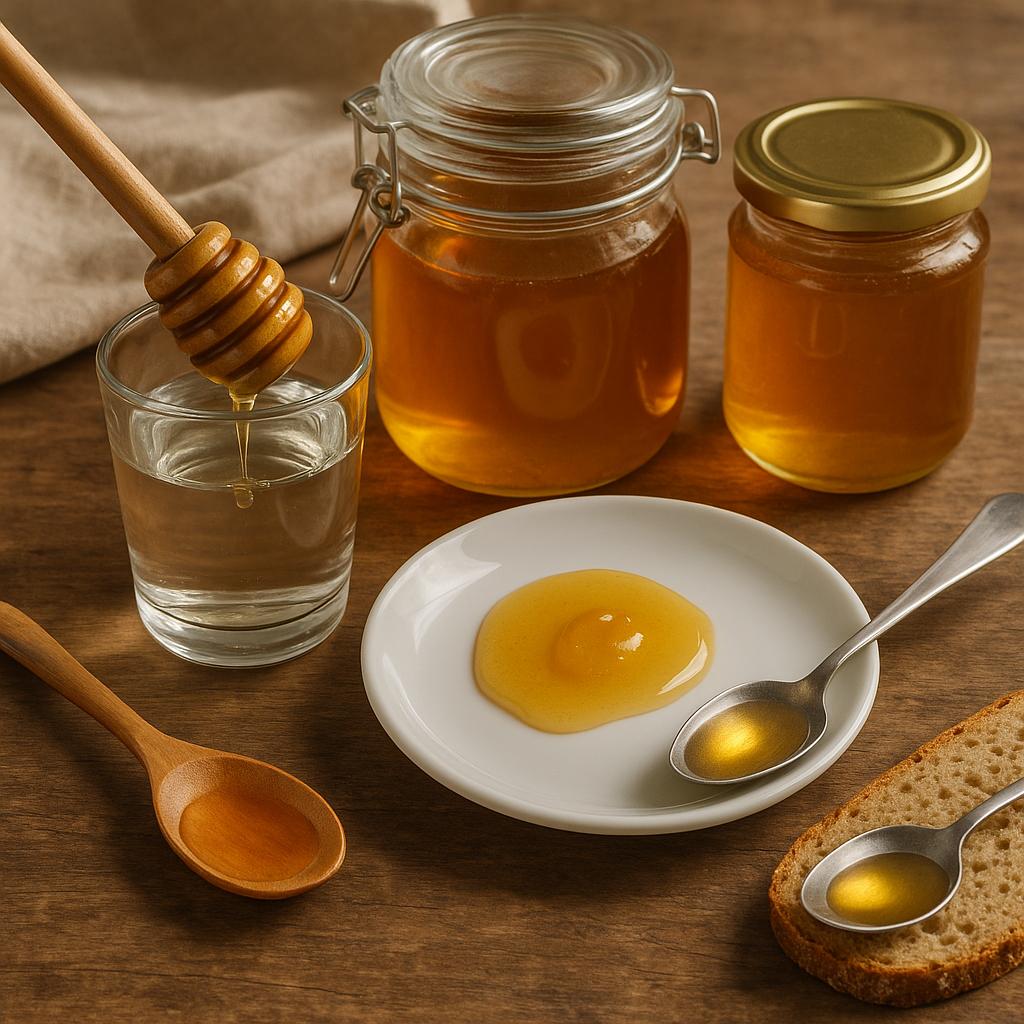 Наличие посторонних примесей в составе меда в домашних условиях можно обнаружить простыми способами. Самое простое средство — это чистая питьевая вода. Взять стакан чистой воды, добавить 1 чайную ложку меда, размешать и оставить на 60 минут. Натуральный продукт растворится полностью. В фальсификате возможно выпадение осадка, появление хлопьев на поверхности и прочих примесей.